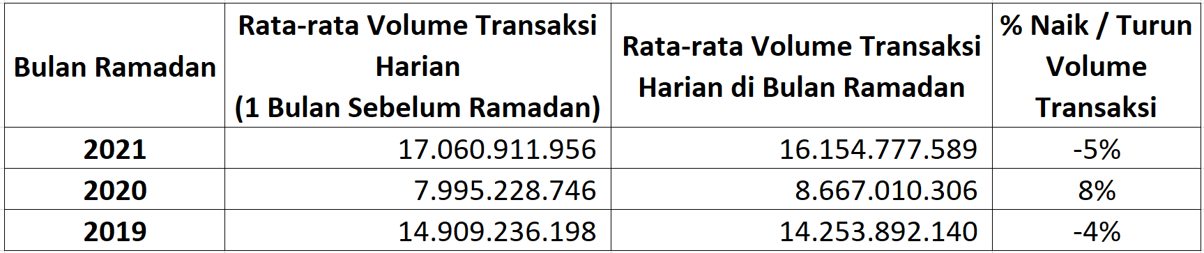 Data Volume Transaksi Saham di Bulan Ramadan (Sumber: IDX.co.id)